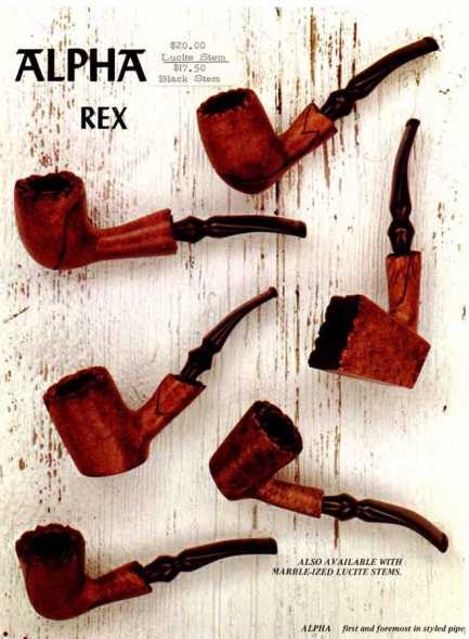 Alpha…. Andersen, Mastersen, Rex, Esprit, Ultra, Caprice, Handmade, Freehand, Comfit, Classic, Calabash, Citation, Pedistal, Supreme, Burl King, Dialite, Allegro, Century, Magnum, Tinder Box Jura, Nobility, and a few others, 721, 722, 723, 724 Narghilia (sp) depending on the number of hoses.