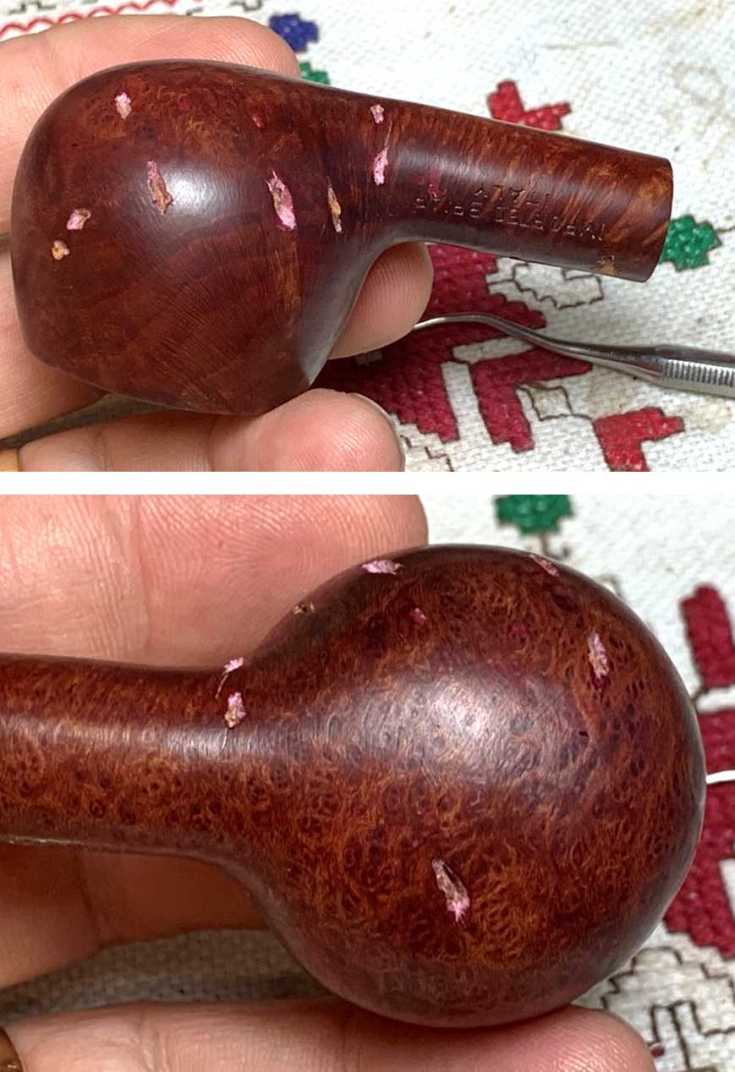 The stamping on the right side of the shank is totally different – ALGERIAN BRIAR, ours: IMPORTED BRIAR. Also the COM is FRANCE, not ITALY. In fact, all the examples in the article were from France.