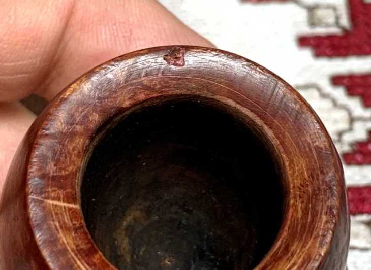 The chamber is inspected for heating problems, and none are found. Switching now to cleaning the external briar, a few pictures show the grime on the bowl.