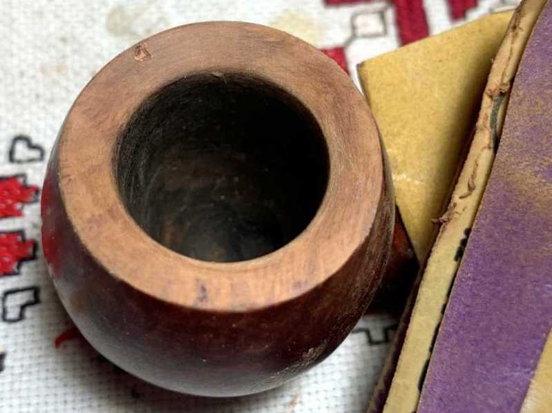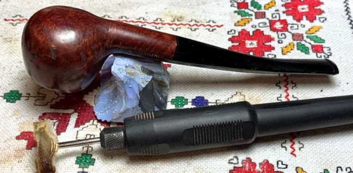 To begin this restoration of this Mastercraft Custom Made (aka: Pandora’s Pipe), the chamber is reamed with the Pipnet Reaming Kit. Two of the four available blade heads are used. This is followed by scaping the chamber walls with the Savinelli Fitsall Tool. The last vestiges of carbon are removed by sanding using 220 paper wrapped around a Sharpie Pen.