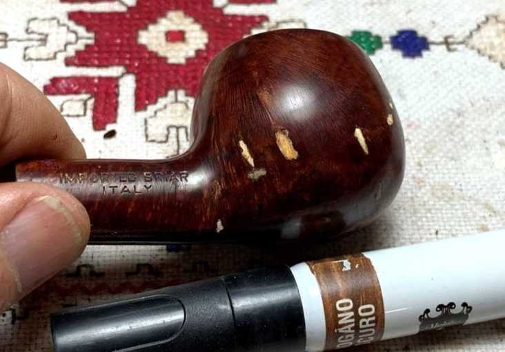 The right side of the shank has stamped, IMPORTED BRIAR [over] ITALY, the COM (country of manufacturing).