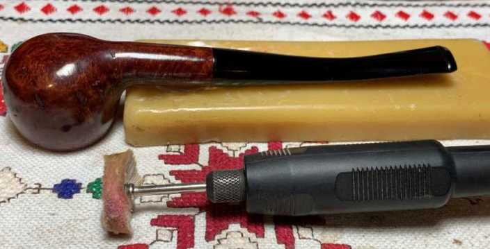 Next, another cotton cloth buffing wheel is mounted onto the rotary tool set at the same speed, and carnauba wax is applied to the pipe. After this is done, the pipe is given a rigorous hand buffing with a microfiber cloth to remove excess wax and to raise the shine.