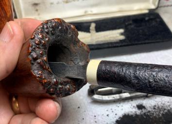 After reaming with the ‘Kleen Reem’, the Savinelli Fitsall Tool is used to scrape the chamber wall further removing more carbon cake build up. It can reach into the hard-to-get places well.