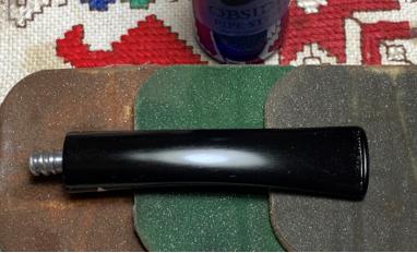 The interesting thing about the vulcanite rubber is that it is very rough and with a charcoal-like feel to it. I’ve seen this before in older stems. After the cleaning is done, the stem will need to be sanded to remove the rough surface.