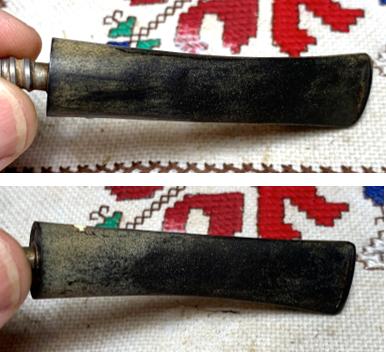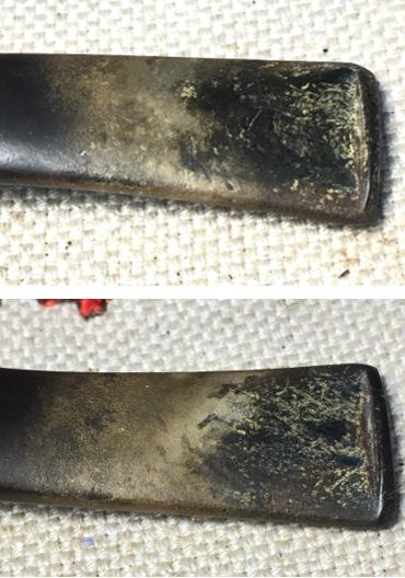 After scrubbing for some time with a cloth, it is evident that oxidation remains on the stem.