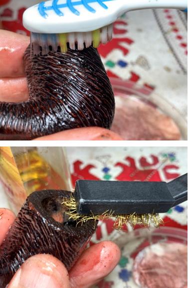 After scrubbing and thoroughly rinsing, the stummel returns to the worktable.