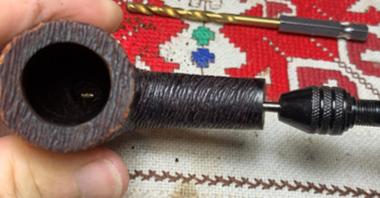 Before applying wax, to minimize dye leeching onto the fingers, the stummel is heated. This can happen when a newly stained stummel is put into service by the new steward, the inaugural heating of the stummel can cause some dye to leech out onto the fingers. To minimize this from happening, the stummel is heated up with the hot air gun to emulate the inaugural service.