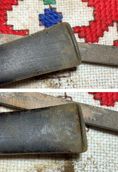 After the cleaning, there appears to be no tooth chatter which is nice, but the lower bit has a slight bite compression which sanding should erase.