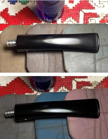 The sanding process concludes with the application of 9 micromesh pads. Starting with wet sanding, pads 1500, 1800 and 2400 are used. Following the wet sanding, dry sanding continues with pads 3200, 3600, and 4000, then with pads 6000, 8000 and finishing with 12000 grades. Between each set of 3 pads, Obsidian Oil is applied to condition the vulcanite stem and to protect from oxidation. I am amazed at the transformation of this stem. The Oil was almost syphoned into the rubber and that glassy, glossy pop is now restored to this venerable Dr. Grabow.