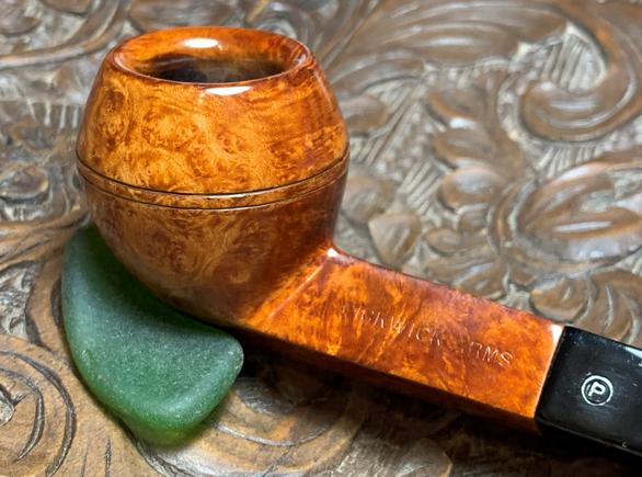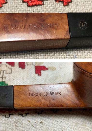 The nomenclature stampings are clear and crisp. On the upper left shank panel is stamped: PICKWICK ARMS. The upper right shank panel has stamped: IMPORTED BRIAR.
