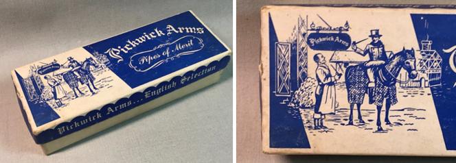I found a lot of anecdotal information about Pickwick Arms but not much information that was solid. However, one ‘hit’ was to discover a vintage Pickwick Arms pipe box for sale on Etsy. While these images did not give me any solid information about the producer, it was cool to see (Vintage Pickwick Arms Pipe Box No Pipe Inside – Etsy).