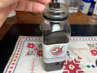 To address the light oxidation, the stem is soaked in Briarville’s Pipe Stem Oxidation Remover for several hours.