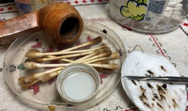 To begin the restoration, cleaning starts with the stem’s airway. It’s practically clean – one pipe cleaner moistened with isopropyl 99% alcohol did the job.