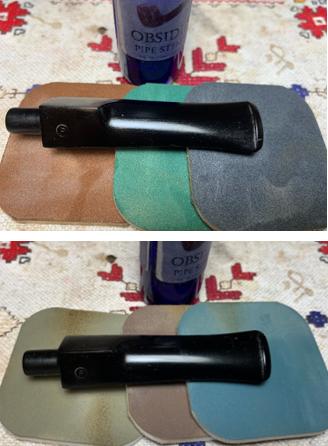 The stummel is sponge sanded first with a coarser sponge and this is followed by medium, light, and fine grades. The sponges do a great job cleaning the briar.
