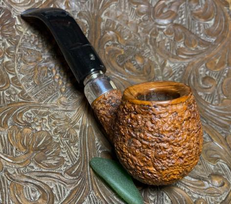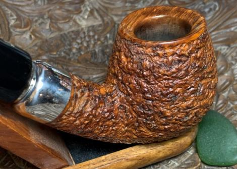 Armed now with the name of the specific line, I did a search of the Ser Jacopo line and found that there were many examples of light blasted or rusticated surfaces. What I also discovered was that I could not find an example of the Spongia line that had a silver shank cap or ferrule. I did find this similar Ser Jacopo listed on SmokingPipes.com. It had a shank cap, but it was acrylic though helpful to visualize the style.