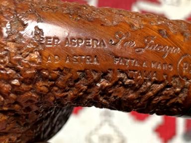 Fatta A Mano translates to “Made By Hand”. Per Aspera Ad Astra is a Latin phrase found on Ser Jacopo pipes and is the Ser Jacopo motto. It translates to “To the Stars Through Travails”, meaning that success comes through hard work. In the Summer 1997 Pipes and Tobaccos article Giancarlo Guidi translated this as “through a difficult way until the stars are reached”.