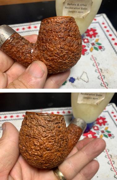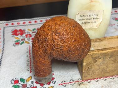 The Balm is placed on the fingers and is worked aggressively into the craggy briar surface. The bowl almost drank the Balm as it was applied. After the Balm is thoroughly applied, it is set aside for about 15 minutes for the Balm to be absorbed.
