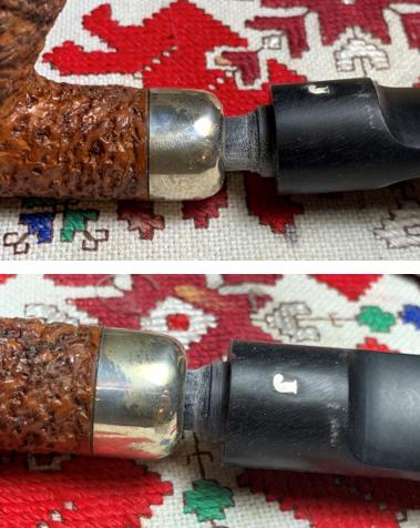 Steves response: Hey Dal, The stem looks funny to me for the silver ferrule. I have not seen any that are fit to the ferrule in that manner. I think it is indeed a replacement. The pipe could well be an earlier one. But that stem is not right. Steve
