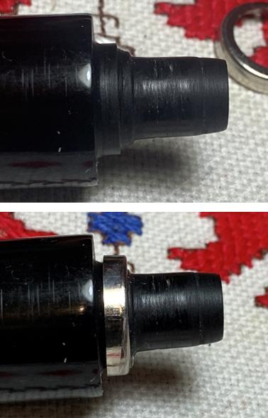 A few days after Christmas, the package from Vermont Freehand arrived. A comparison of the nickel VP cap with the brass cap I was using shows that the depth of the former is less.