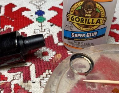 Next, the black CA is applied on the compressions and a line of CA was also placed over the button lip – upper and lower.