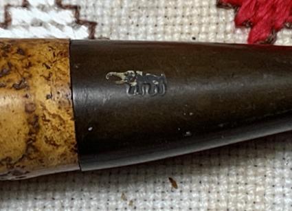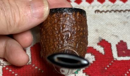 In this list, the animal logos listed are Elephant, Rhinoceros, Giraffe, and Flying Bird or Antelope.  The Elephant logo is the most used in the list.  Looking at the differing Elephant logo line descriptions, the line that fits the Kiko Elephant on our table seems to be the Countryman line with our black trim stain which gives it a rustic vibe.  In the list above, each of the animal logos is linked to the corresponding reference at Pipephil.eu.  The picture below is a Countryman shown in the Pipedia article.  Our pipe has a number 6 which undoubtedly points to a Billiard shape number.Looking more closely at the Countryman on the table, as one would hope, the chamber has next to no cake build up, which is good news for a Meerschaum. The edge of the rim has been chipped here and there and the lighter Meerschaum is peeking through the black chimney trim. This needs to be touched up.The stem has some tooth chatter, but nothing serious.  The stem is deeply oxidized.I’m glad to see that the Elephant stem logo appears to still have definition.  At the end of the project, I’ll work on refreshing the logo.The threaded screw-on tenon has worn and as is often the case, over time the stem ends up being overclocked as it is tightened and retightened.  The stem needs to be brought back to a proper orientation.The cleaning starts with the stem using a single pipe cleaner and isopropyl 99% alcohol.  It cleaned so quickly that I didn’t take a picture before it was in the soak for oxidation.  The picture below shows how thick and deep the oxidation is in the vulcanite.  To address this, the stem is placed in a soak of Briarville’s Pipe Stem Oxidation Remover for several hours.With the stem soaking, to clean the chamber of the very light amount of cake build up, the Savinelli Fitsall Tool is used to scrape the wall.  I never use a regular reaming tool with Meerschaum as it can create too much torque, and this could crack the bowl – not good. The chamber is next sanded with 220 grit paper wrapped around a Sharpie Pen. The chamber is clean, and no problems are detected.  Moving on.To clean the Meerschaum surface, undiluted Murphy’s Oil Soap is used.  A few pictures of the stummel show the general condition.  It’s difficult to see grime on the rough sculpted surface.The surface is scrubbed with the soap and a cotton pad.  A bristled toothbrush also helps to get into the crooks and crannies of the rustication.The stummel is next taken to the sink to thoroughly rinse off the soap.  The results of the cleaning are interesting.  The ‘yellow’ stained Meerschaum has whitened because of the cleaning.  It also looks dry and I’m thinking that the hot bee’s wax treatment which is coming and is the usual way of waxing and conditioning Meerschaum, will be well received by this Meerschaum – later.Next, to clean the internals, 1 cotton bud and 2 pipe cleaners are used to clean.  This pipe was not too dirty.Before applying bee’s wax to the Meerschaum surface, the black chimney trim is touched up using a black dye stick. It looks much better now with the black refreshed.Next, the application of bee’s wax is where the ‘magic’ happens with Meerschaums. The Meerschaum absorbs the hot wax, and it helps to condition the Meerschaum as well as encourage the valued patina.   I use a mason jar that is heat resistant to warm the wax.A hot air gun is used to liquify the bee’s wax.  It doesn’t take long.  After the wax is liquified, the stummel is also heated up with the hot air gun to help the wax spread evenly over the surface.  When the wax cools, it congeals and if it’s too thick, it can be a bear to buff off the excess wax from the surface.A horsehair brush is used to paint the liquified wax onto the stummel surface.  Horsehair is used because it won’t melt like synthetic brushes.At this point the entire stummel has been covered with the wax and it has congealed.  To thin it out, the stummel is heated again in a specific way.It was impossible to take a picture of this process, but I held the hot air gun propped up and pinched by my knees with the hot air pointed upward toward the stummel.  I held the stummel with a cork handle inserted in the chamber.  You can see the cork in the picture below.  As I held the stummel over the mason jar, the hot air blew lightly onto the stummel to liquify the wax gently.  As it liquified, the brush is used to pull the wax down toward the jar with gravity helping.  With help from the brush, the excess wax drips off into the mason jar.  This helps to thin out the wax on the surface and to continue absorbing the bee’s wax.Well, I have never seen this happen before.  The Meerschaum stummel went beyond a honey brown to a darker, richer brown – almost reminds me of chocolate fudge.  When I said that the Meerschaum was dry and would do well with a bee’s wax treatment, I had no idea the result would be the Meerschaum absorbing it and transforming to this degree.  It took some time using a microfiber cloth to buff off the excess wax and buff up the shine.  It IS shiny and the Meerschaum is healthy, but it has transitioned to a rich, deep brown….  It’s no secret that bee’s wax is used to augment the natural patina transition that is welcomed and sought after, but this patina is a surprise!  The article above describes that the Kiko stummels are stained with either black or yellow.  The cleaning must have removed the dye and the natural hues created by the honey took its place.  That’s the only thing I can think of that would give a reason for this transformation😊.  We will press on!The stem has been soaking for several hours in Briarville’s Oxidation Remover.  When it’s fished out, a picture shows the raised oxidation on the vulcanite surface.Removing the raised oxidation takes some elbow grease using a cotton cloth.  The stem is rubbed vigorously with the cloth, and this eventually rubs off the oxidatio