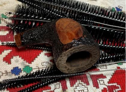 Next, the stummel is taken to the sink to work on the internals. Using warm water, the internals are scrubbed using shank brushes and anti-oil liquid dishwashing soap. After a thorough rinsing the stummel comes back to the worktable.