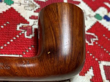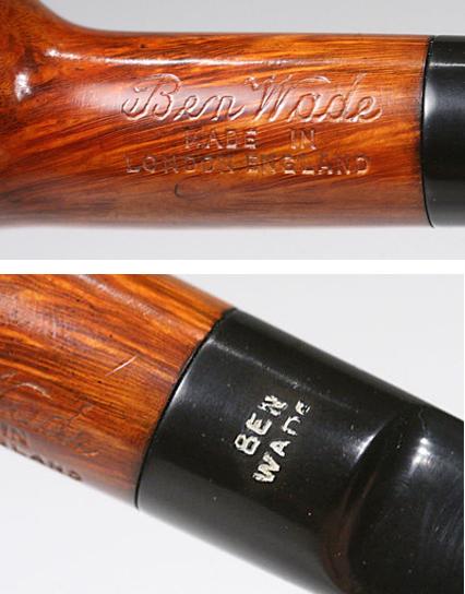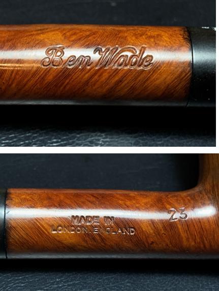 The stamping on the left side of the shank is crisp and strong in cursive: Ben Wade. The right side of the shank has stamped, MADE IN [over] LONDON, ENGLAND. To the right of this is stamped the shape number, 23.