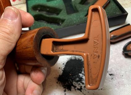 The Savinelli Fitsall Tool does the heavy lifting digging and scraping out the charred briar. The pile shows the progress.
