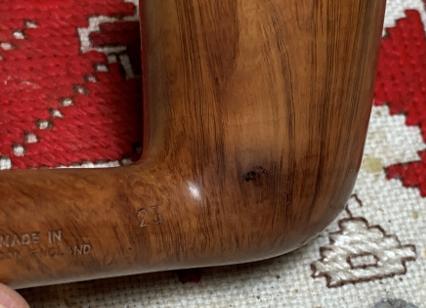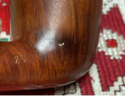 The second pipe is a Ben Wade Made in London, England 23, which has some issues. I received the Ben Wade in 2019 in a lot of 16 pipes from a pipe man in the Kansas City area. John reached out to me wondering if he could donate some of his collection to help support the Daughters of Bulgaria. I appreciate John’s donation of pipes that went into the For “Pipe Dreamers” ONLY! collection for pipe men and women to commission. The Ben Wade that got Bill’s attention is the last pipe in the middle row. The dimensions of the Dublin are Length: 5 3/4 inches, Height: 2 inches, Rim width: 1 1/2 inches, Chamber width: 13/16 inches, Chamber depth to be determined.