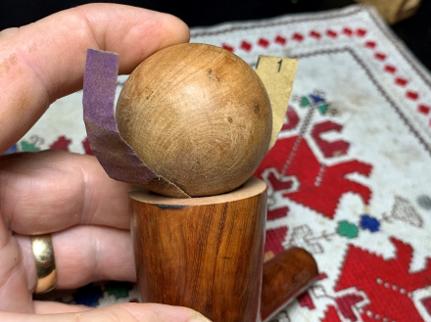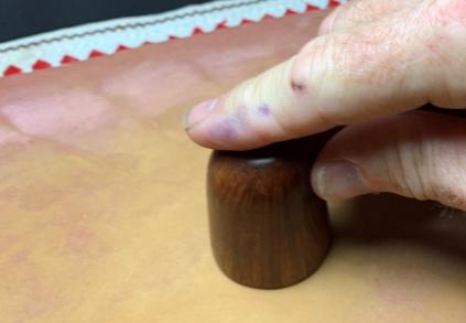 To address these issues, a smart bevel will be created on the rim edge. To create an even, sharp bevel, 220 paper is wrapped around a wooden orb and then rotated in the mouth of the chamber.