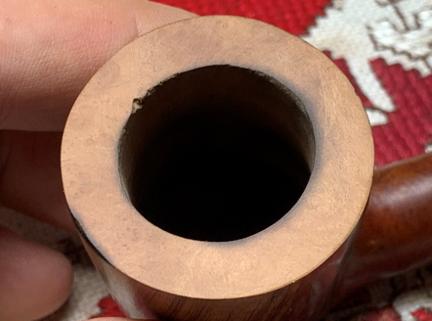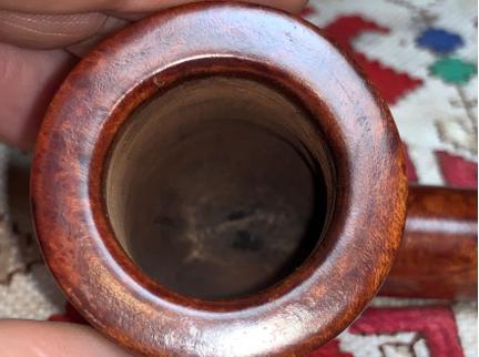 Looking now at the issues of the stummel, the rim has darkened briar from lighting practices. The briar is darker on the aft part of the rim and on the very front edge.