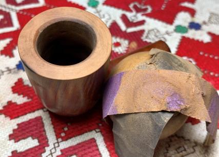 One mini project remains before application of the wax. The chamber has been through quite a bit and lost some of its briar real estate above the draft hole. The chamber has been gently tapered and smoothed to remove the damage caused by the charring. To help protect the chamber, Pipe Mud will be used to create a cake starter.