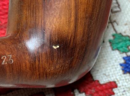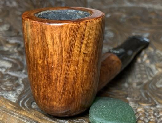 I really like the look of the bevel and it has removed most of the dark briar and the chip is gone.