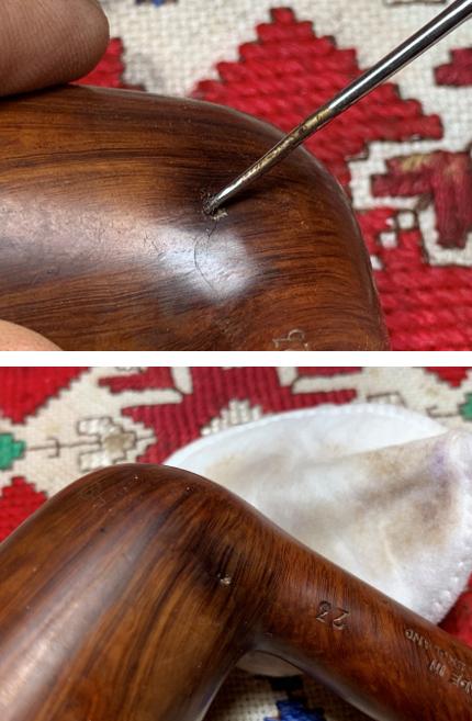 Next, time to address the pit on the right lower side of the stummel.