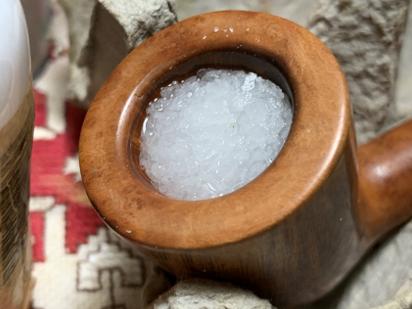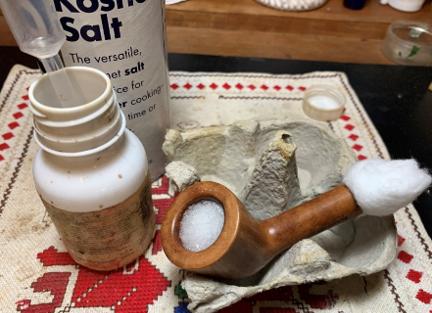 Kosher salt is used because it is unlike regular salt or iodized salt which leaves an iodized aftertaste. The soak also addresses possible ghosting and refreshes the briar nicely. The salt is poured and fills the chamber.