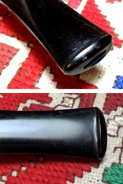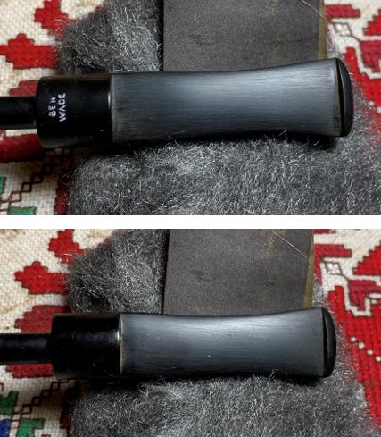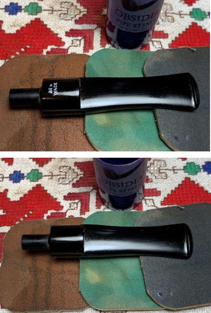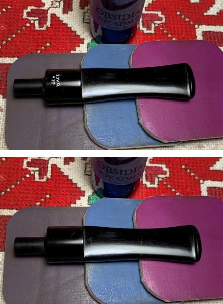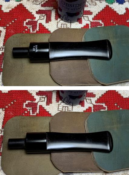 Finally, the entire stem is sanded/polished with pads 6000 to 12000. Between each set of 3 pads, Obsidian Oil is applied to help condition the vulcanite stem and to guard against oxidation in the future. The stem looks great.