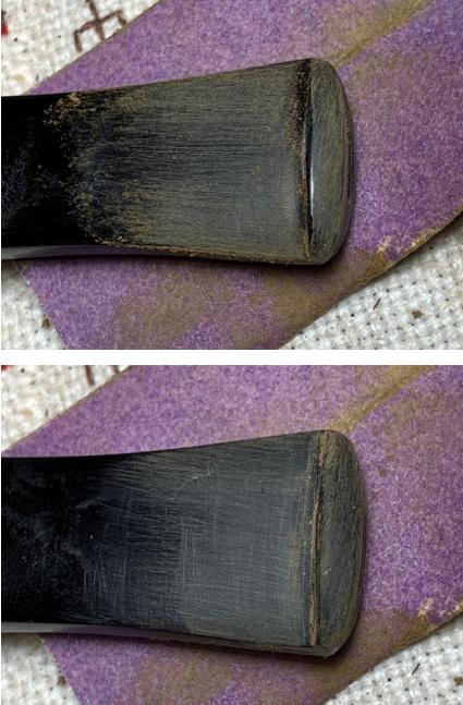 Next, the micromesh regimen – first, the lower part of the stem is wet sanded with pads 1500 to 2400.