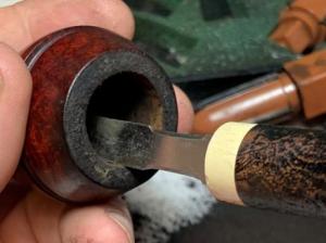 Following the reaming, the Savinelli Fitsall Tool is used to further scrape the chamber and get to the angled areas at the floor of the chamber.