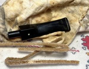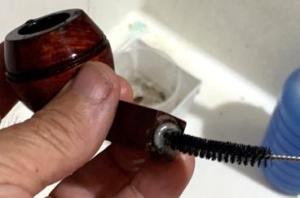 To begin the revival of this Dunhill, the stem’s airway is cleaned with pipe cleaners moistened with isopropyl 99%. Only one pipe cleaner was needed.