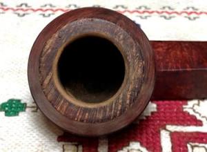 Using a cotton pad, the briar is scrubbed with Murphy Oil Soap which is a gentle detergent. A brass brush is used to work on the rim. The brass brush is not as invasive as other abrasives but still adds some abrasion to clear the lava caked on the rim.