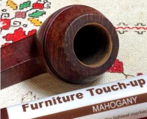 To do this, a Mahogany dye stick is used. It is close to the original from the picture below and I like it. The sanding that follows should help the new dye to blend in.