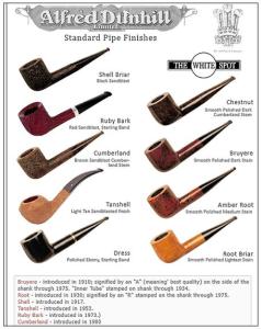 I enjoy dated ads that give a peek back to a time that is no more. This ad is the ‘Standard Pipe Finishes’ produced by Dunhill. The Dunhill Bruyere is described further in the right-hand column. In the notes at the bottom, there is an additional bit of information: