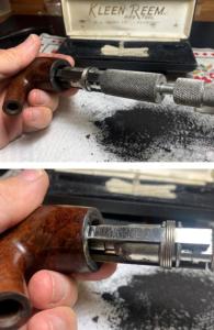 This is followed by scraping the chamber with the Savinelli Fitsall Tool. This is a great tool that is hard to find. I found one come up on eBay several years ago and in the bidding process, I would not be denied 😊. The Tool gets to the difficult angles at the floor of the chamber.