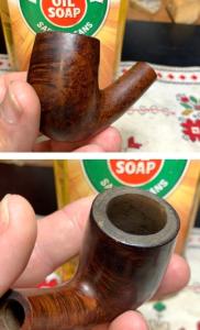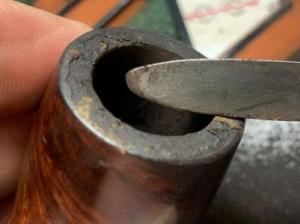 Switching now to cleaning the stummel, a picture shows the chamber and the rim – each needing to be cleaned.