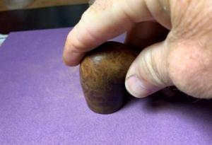 To clean the rim and to reestablish crisp lines, the rim is topped starting with 220 grit paper on the chopping board. The topping only will remove enough to clean the edges. With the stummel inverted on the paper, it is rotated several times. I’m careful to keep the pressure evenly distributed as I press down. I don’t want to dip into the soft areas on the rim.
