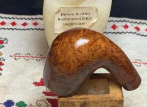 Next, Mark Hoover’s ‘Before & After’ Restoration Balm is worked into the briar. The Balm does a great job bringing out the natural hues of the briar. After the Balm has been applied thoroughly, the stummel is put aside for about 10 minutes for the Balm to do it thing.