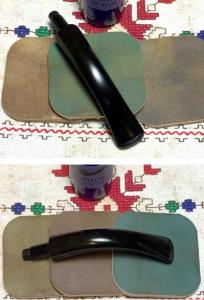 All 9 micromesh pads are used next to dry sand the stem. To condition and guard the stem from oxidation, Obsidian Oil is applied between each pad – 1500, 1800, 2400/3200, 3600, 4000/6000, 8000, 12000.