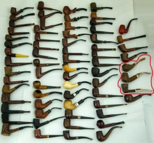 A fuller discourse of the Lorenzo name can be found at Pipedia (Lorenzo – Pipedia) with more pictures of Lorenzo pipes. I can’t say with any certainty that the ‘Seahorse’ finish Volcano on the table is from Lorenzo, but this pipe and his brothers in the queue certainly jump out and get your attention with the rusticated ‘Seahorse’ finish.