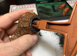 Pipeman Aaron reached out to me after the Rusticated Volcano got his attention. What I discovered about Aaron is something I appreciate deeply. Not only do I appreciate that Aaron is a father of 3 children and 4 grandchildren, but I discovered that he is a Criminal Investigator in West Tennessee working for a city police department. In our communications, I discovered that he oversees all child abuse and sex crimes involving children. This vocation and focus connected him immediately with our support of the Daughters of Bulgaria. When my wife and I were in Bulgaria working with the Daughters, we were heart-sickened for the children we encountered on the streets of Bulgaria selling themselves. My appreciation for Aaron’s vocation and the difficulty of seeing the abuse of children runs deep. On the lighter side, I discovered that Aaron loves the outdoors, collects pipes and even has tried his hand at crafting a pipe. Lastly, Aaron describes himself as an old firearms hobbyist. I appreciate learning about the new stewards of the pipes I restore. Here are pictures of the Unbranded Rusticated Volcano that got Aaron’s attention.