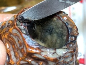 The tip of the Savinelli Fitsall Tool is also used to scrape the lava crust in the crevasses.
